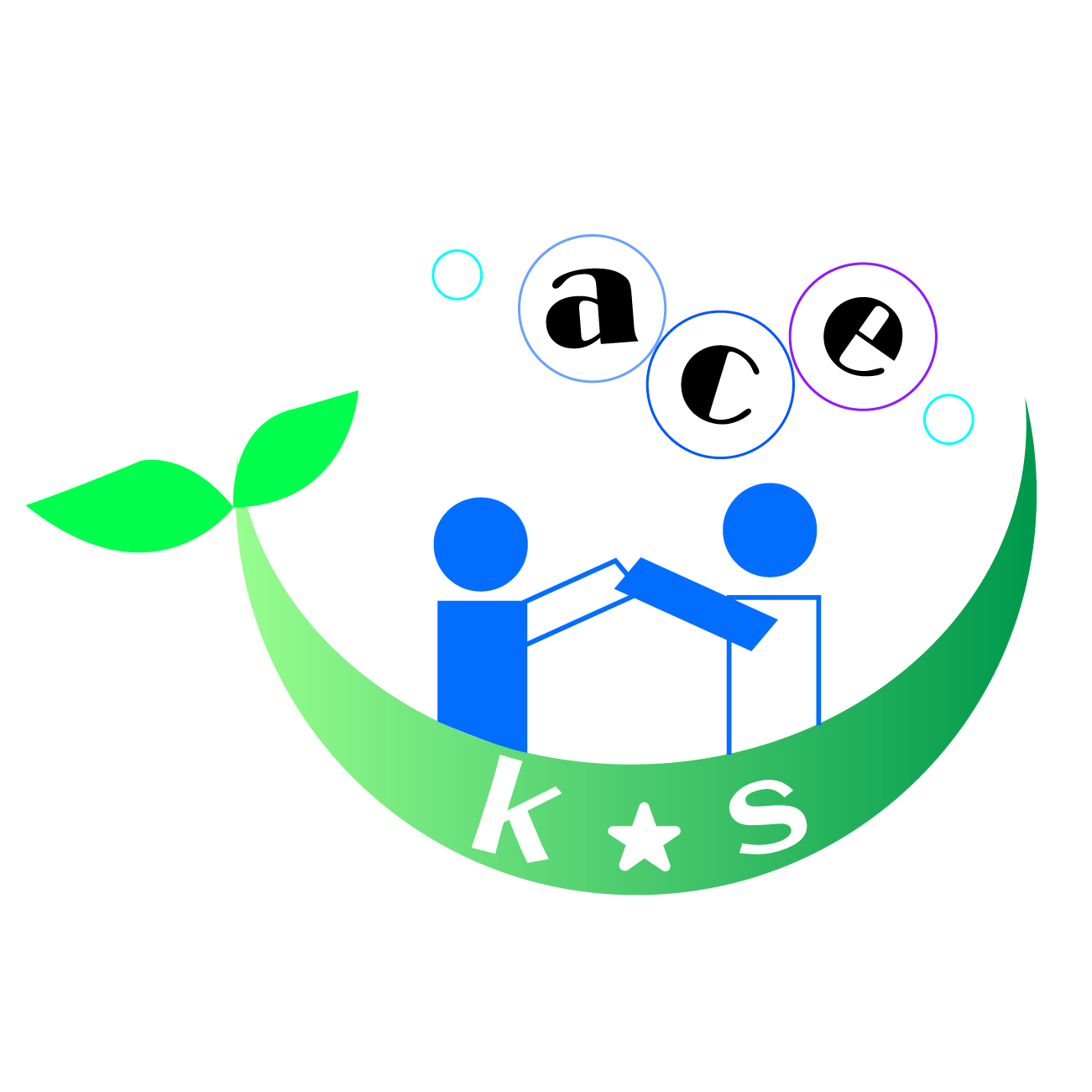 Các ký tự “k”, “★”, “s” ở phần dưới logo là viết tắt của Kyoiku(教育 – giáo dục)và System(システム – hệ thống), tượng trưng cho sứ mệnh của ACE là hỗ trợ toàn diện cho “hệ thống giáo dục”.